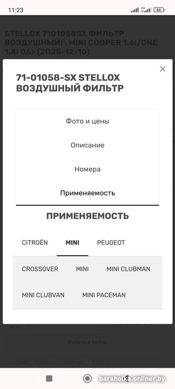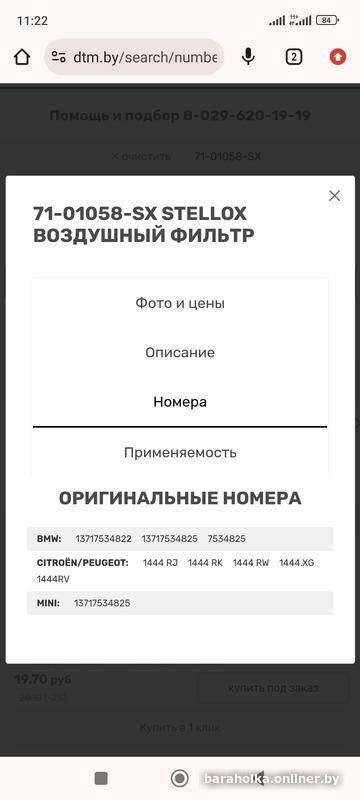 Фильтр воздушный, Mini cooper 1.6i,1.4i, Peugeot, Citroen , Ширина 84 мм, Высота 57.3, Общая длина 491.5 мм . Могу отправить простой почтой.+375296726044 . Александр.