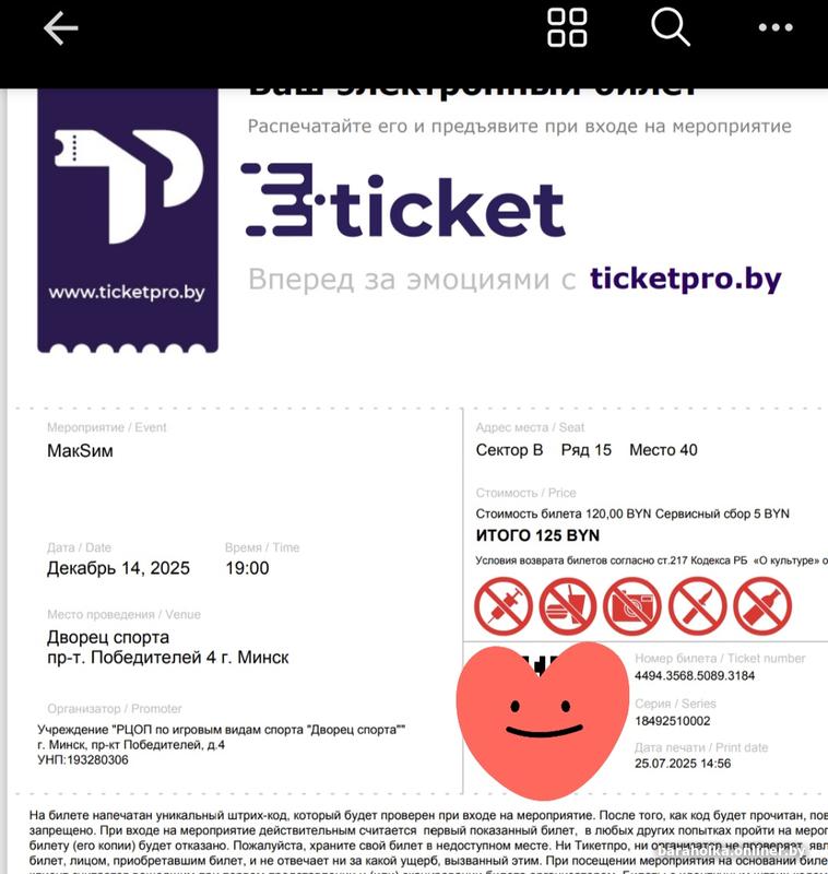 • У подруги не получается сходить Сектор В Ряд 15 Место 40Минск