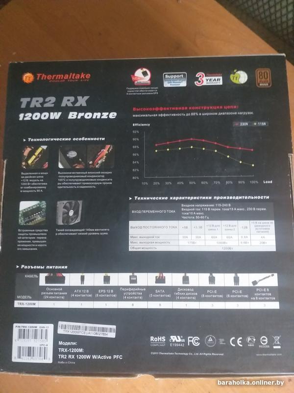 Блок питания доя пк thermaltake tr2 rx 1200 w bronze полный комплект