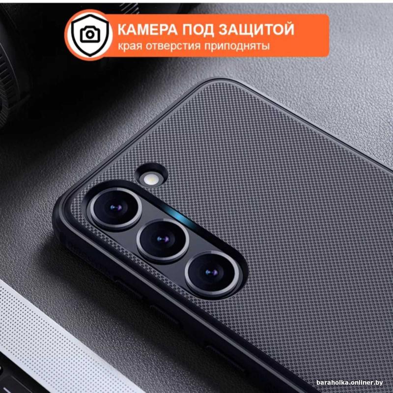 Поверхность чехла имеет тактильно ощутимую рельефную структуру, благодаря которой он не скользит в руках. Помимо этого, на нем не остаются отпечатки от пальцев после многочисленных прикосновений.
