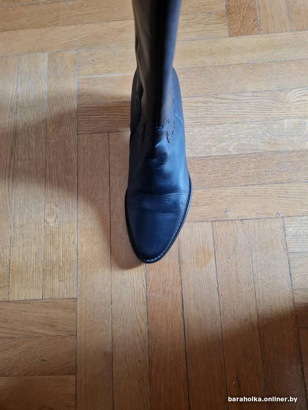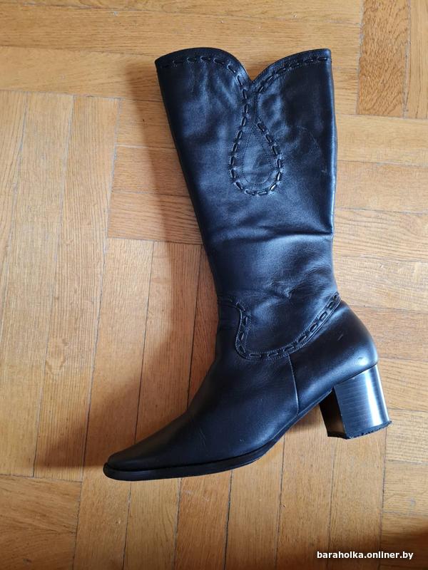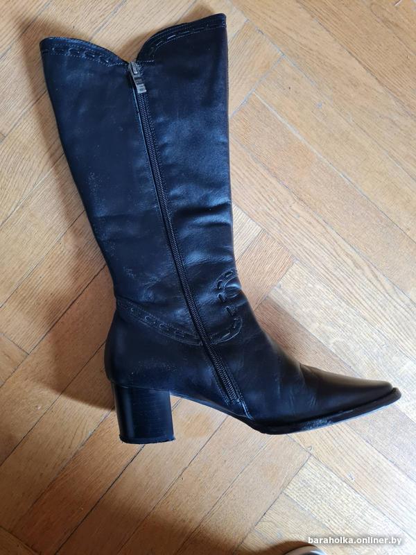 Недорого в отличном состоянии продаю осенние сапоги из натуральной кожи,чёрные,с приятной мягкой подкладкой. На 37.5 р,высота каблука 5 см,имеются запасные набойки,высота голенища с каблуком 38 см,ширина голенища вверху 37 см. Возможна отправка по РБ. Т.029 954-15-60