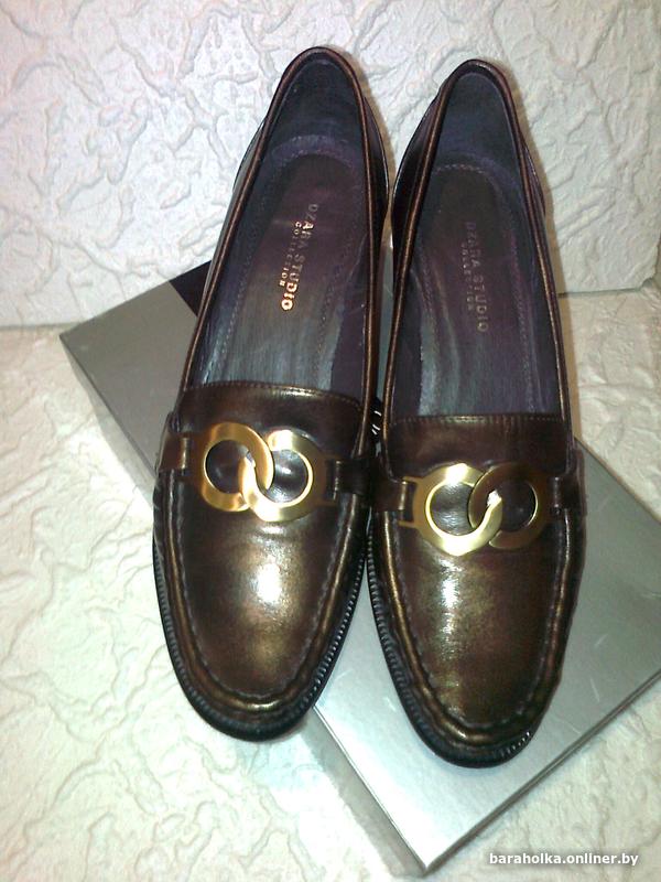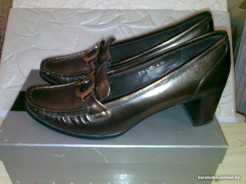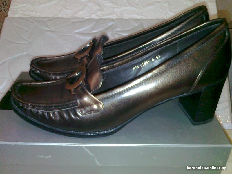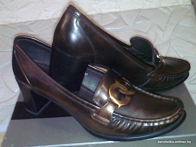 Туфли женские, нат. кожа, внутри тоже нат. кожа. Пр-ва РФ. Высота каблука 6,5 см. Размер 39-40. Маркировка на подошве 39. По стельке 26,0 см. Цвет-бронзовый-темно-оливковый. Состояние новых, только примерялись. Каблук широкий, устойчивый. Почтой высылаю.