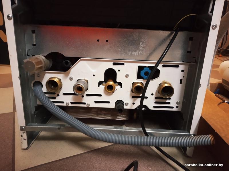 Требует замены первичного теплообменника (при "промывке" газовщиком от отложений кальция внутри появились микрокапли воды). В таком виде работает, но нужно поставить новый - цена зимой 2021 г. была 1800 руб.