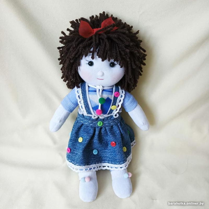 2. Куколка текстильная в джинсовой юбочке ручной работы. Мягенькая, легкая, наполнена холлофайбером. Высота куколки 30 см. Думаю девочки оценят)) ЦЕНА 36 руб.