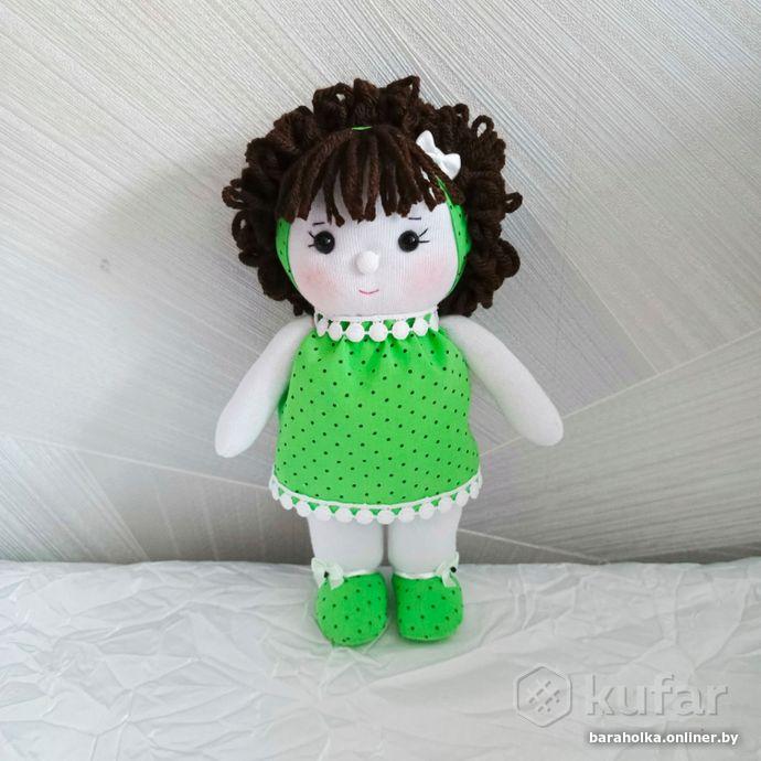 3.. Милая текстильная куколка в салатовом платьице. Рост 22 см. Ручная работа. Очень мягкая, легкая, наполнена холлофайбером. ЦЕНА 28 руб.