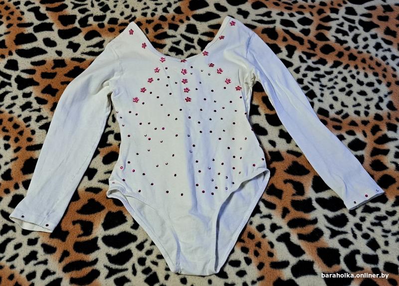 1)Купальник белый со стразами-длина купальника-53см, длина рукава-42см, р.128-134примерно).