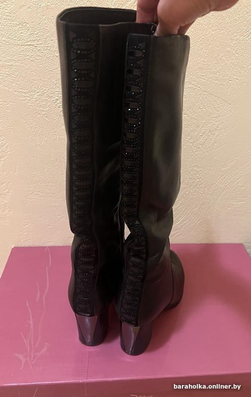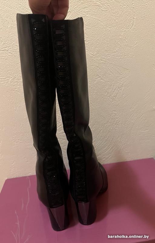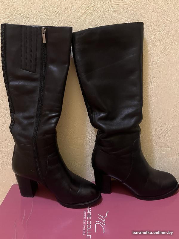 Сапоги женские еврозима 1 раз б/у. В новом состоянии. Размер 38, чёрного цвета, натуральная кожа. Высота каблука сзади 7,5 см (внутри 6 см). + высота голенища 37 см. Каблук устойчивый. Внутри мех чуть выше косточки.