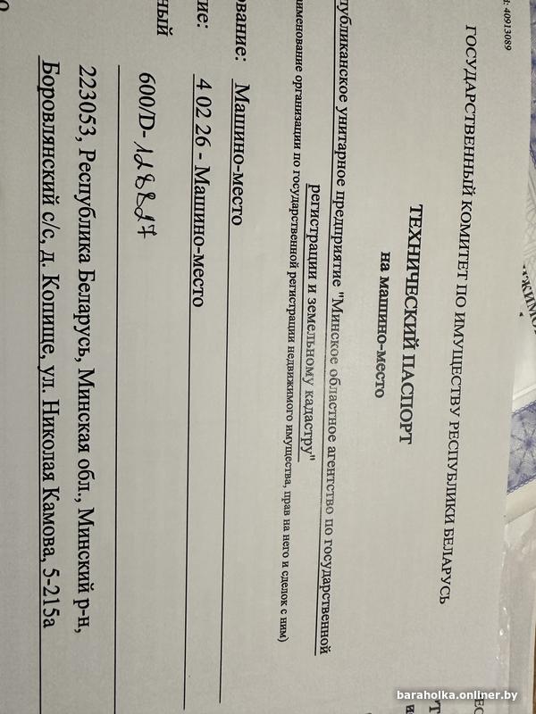 • Продам машиноместо в паркинге в Новой Боровой 2500$Минск