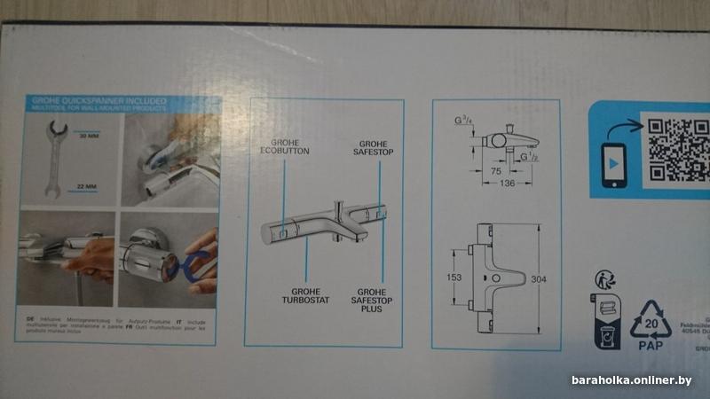 GROHE SafeStop Plus опционно ограничитель температуры на 43°C, включен