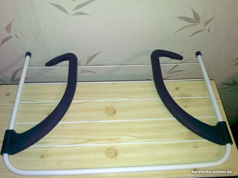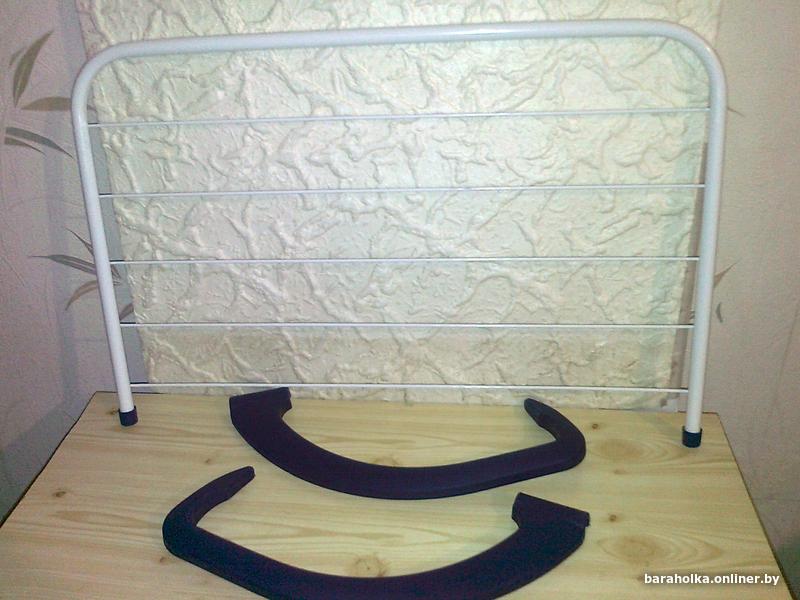 Сушилка для белья навесная на батарею. Размер 51х33 см. Для старых чугунных батарей не подходит! Новая, не использовалась. Решетка металлическая, поручни пластиковые, могут отстегиваться. Перемещаются и складываются. 5 перекладин.