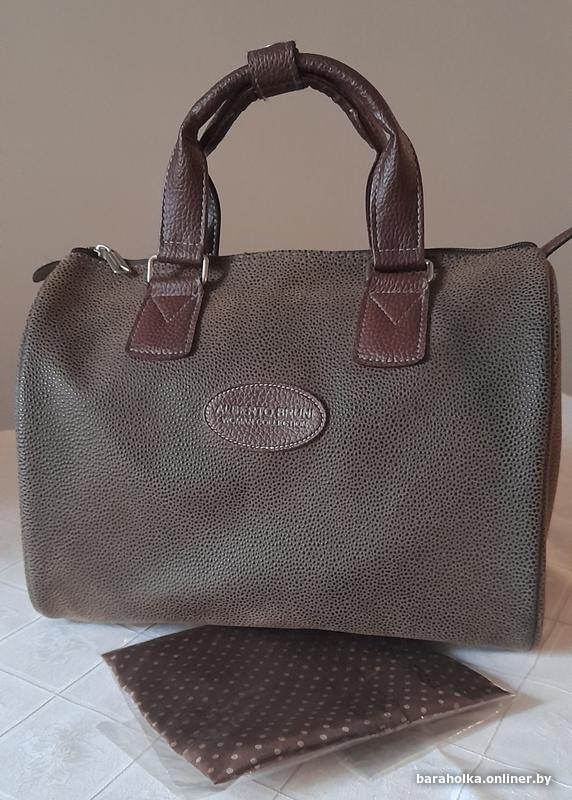 Сумка Alberto Bruni (Italy) новая, из искусственной кожи, коричневого цвета с черным узором в горошек; размеры: 28 x 26 x 18 см; комплектация: 1 внешний карман на молнии; 1 внутренний карман на молнии и 2 открытых внутренних карманов. Плюс женский, шёлковый платок 90х90 см 100% шелк в цвет сумки. Куплена в Италии