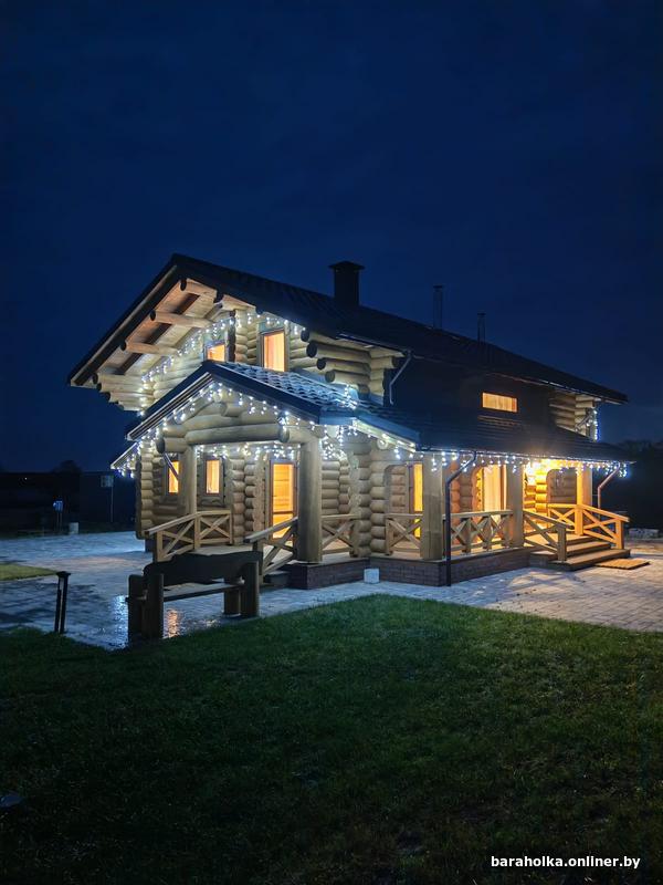 Коттедж с баней, абсолютно новый, рассчитан на спокойный, романтический отдых в составе одной-двух семей или дружеской компании до 7 человек. С балкона спальни – вид на озеро Березовское, оно примыкает к участку, собственный пирс, молодой грушевый сад. Холмистые пейзажи Белорусского Поозерья, озера ледовикового происхождения, спокойная деревенская атмосфера. По всем вопросам обращаться по телефонам: +375 29 353-54-65; +375 29 506-77-77 В праздничные периоды стоимость проживания может отличаться.