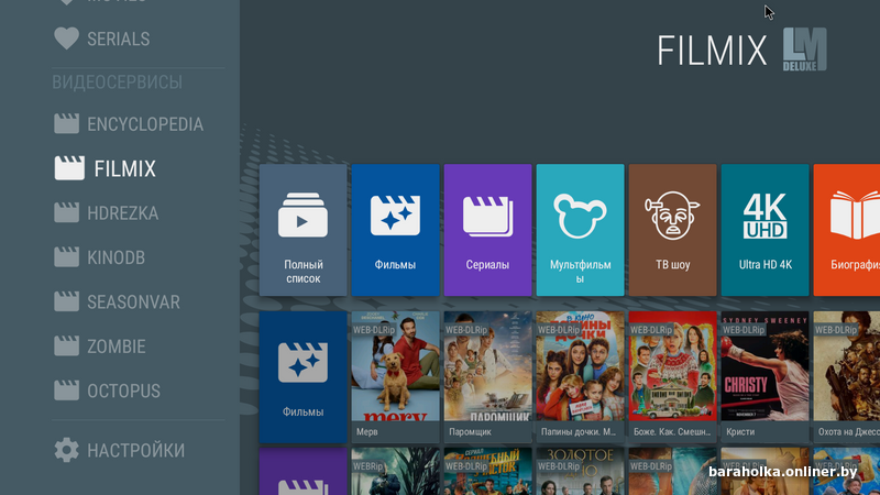На Андроид смарт ТВ боксе установлен YouTube без рекламы и бесплатные агрегаторы онлайн кинотеатров HD VideoBox, Кино HD и другие (смотри фото). Доступ к Filmix, Rezka, Lostfilm торрентам Rutor, Rutracker и многим другим. Только в LazyMedia Deluxe доступ к 7 кинотеатрам (смотри фото)!