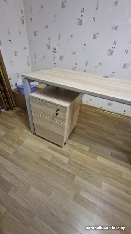 Крепкие и качественные столы на металлическом каркасе с выкатными тумбами.