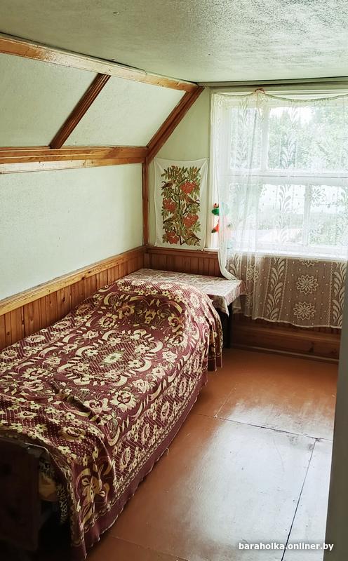 В доме 2 комнаты и кухня на первом этаже и одна комната на втором.
