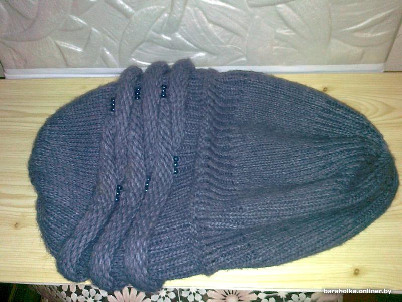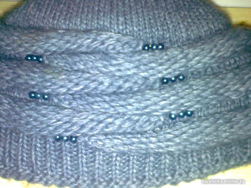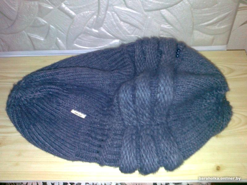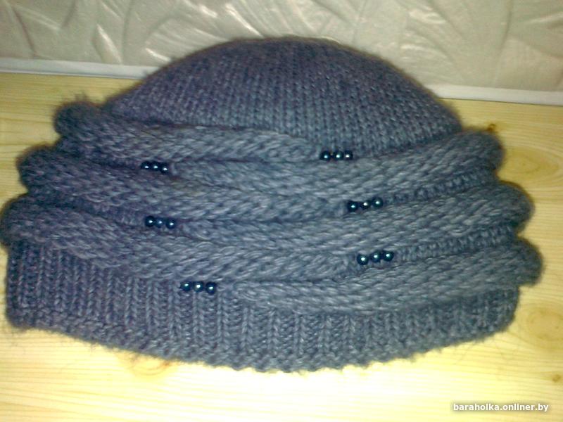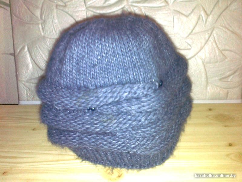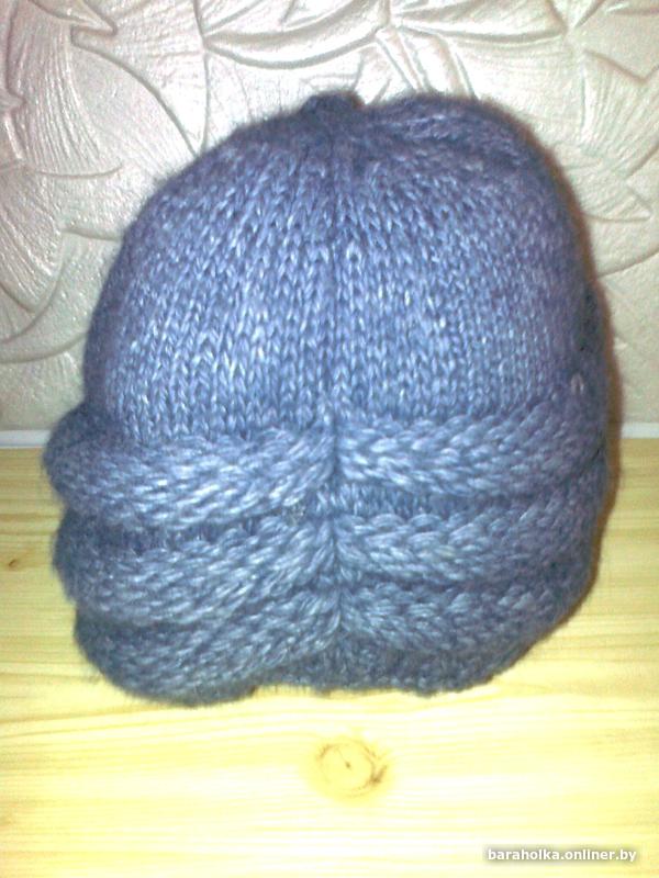 Зимняя двойная женская вязаная шапка. Круглой формы. Фирма Русский трикотаж. Состав 50% шерсть, 50% акрил. Украшена бусинами. Цвет-серо-синий. Р-р 58-59. Состояние отличное. Б\у. Почтой отправляю.