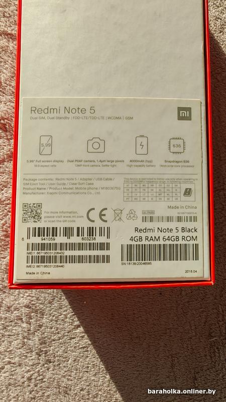 Продам коробку и документы для Xiaomi Redmi Note 5.