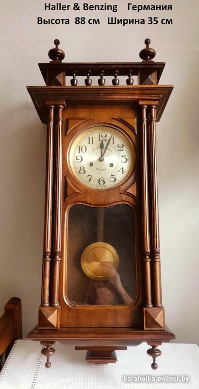 Представленные настенные часы Haller & Benzing с оригинальным механическим ходом и клеймом в виде зубчатого колеса с логотипом компании "H & B". Механизм с маятником. Корпус изготовлен из дуба.