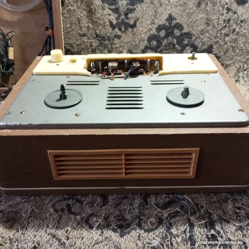 Исправен. Воспроизведение и перемотка работают. Пассик восстаноален склейкой. Прижимной ролик заменен на ролик из Маяка-201. В комплекте микрофон МД-47, звуковой кабель, шнур питания и катушка. Отсутствует крышка блока головок и одна ручка (тембр, запись). Дефект декоративной крышки - см. фото. Могу выслать видеоролик работы на Вайбер.