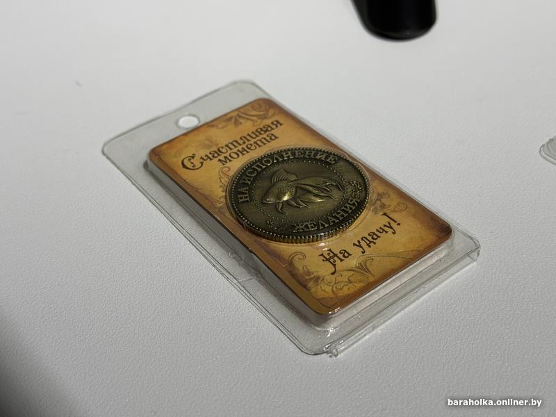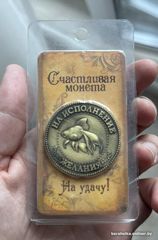 Монета сувенирная на удачу / Счастливая монета рыбка