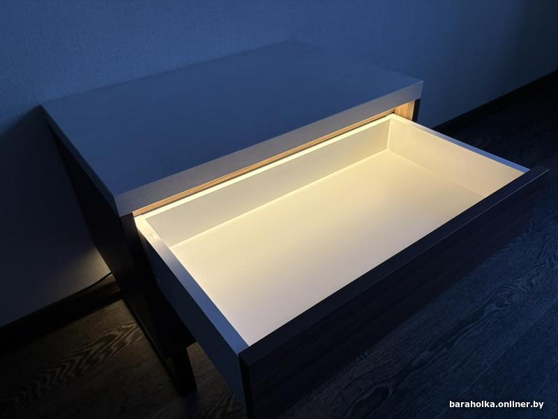 Стильная тумбочка с подсветкой от пульта, направляющие скрытого монтажа от нажатия (тихий ход). Цена за штуку, в наличии 2 шт.