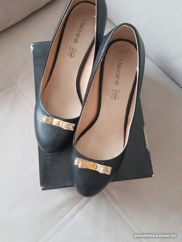 Туфли выходные, размер 40. стелька 25,5. Каблук 8 см, с золотым ободочком, в переди бантик золотого цвета. Надевались 1 раз, в помещении., набойки фабричные, есть еще комплект запасных набоек. Почта, европочтаЖодино
