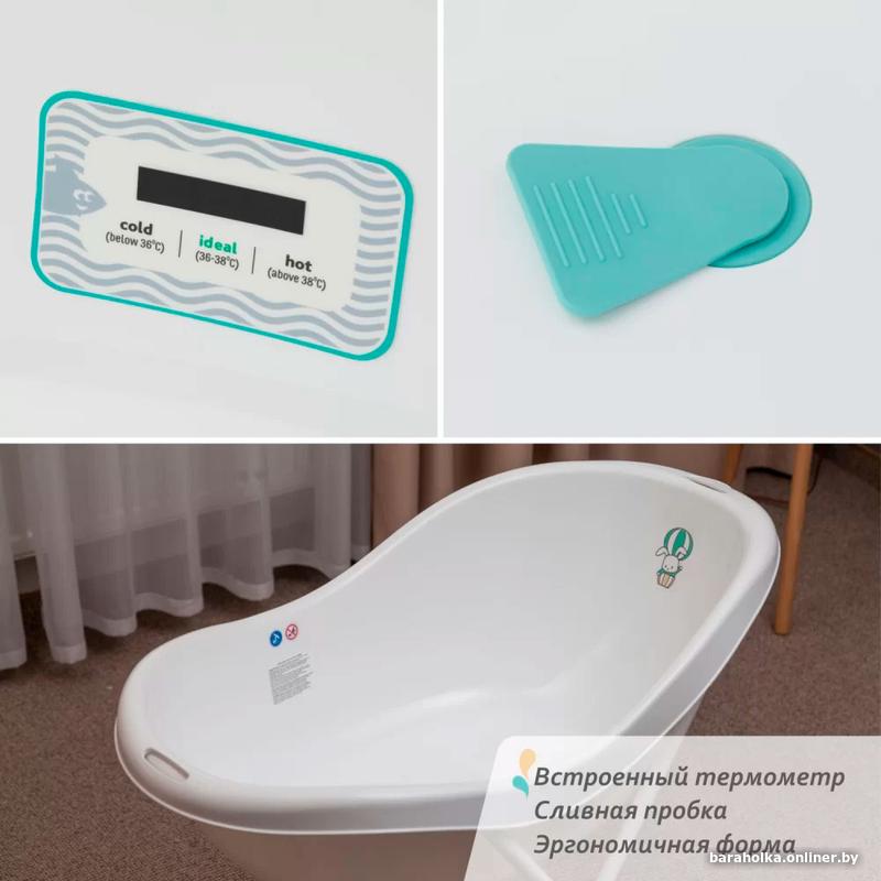 Благодаря компактным размерам свободно помещается в большинство ванн, чтобы вылить воду предусмотрена сливная пробка. Встроенный термометр поможет определить идеальную температуру воды для купания малыша (36-38°С).