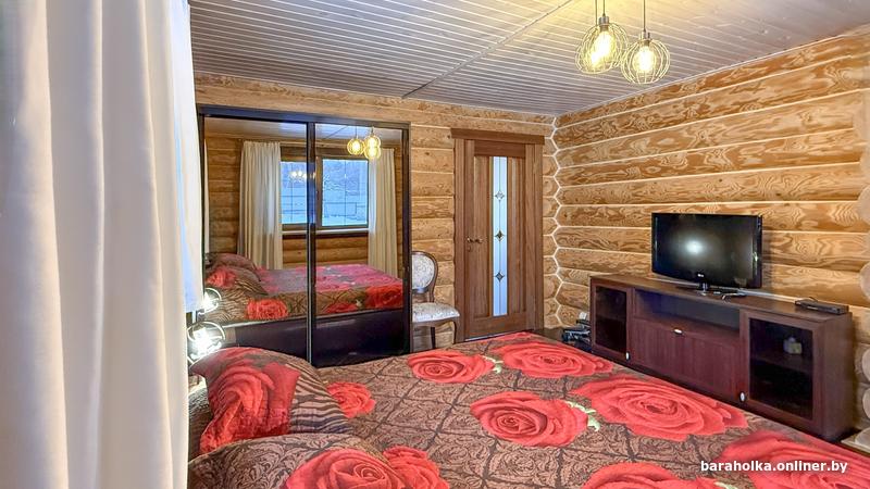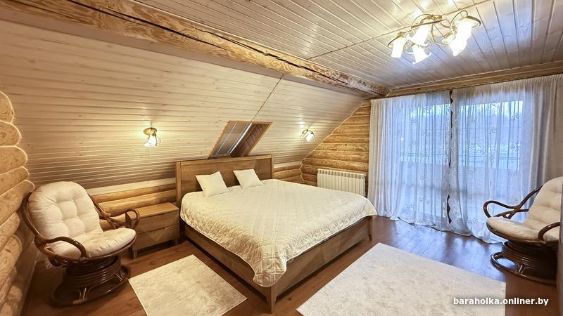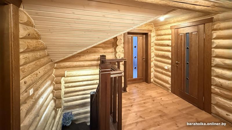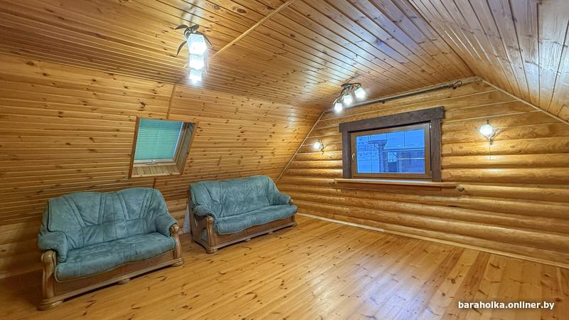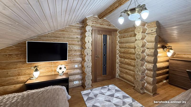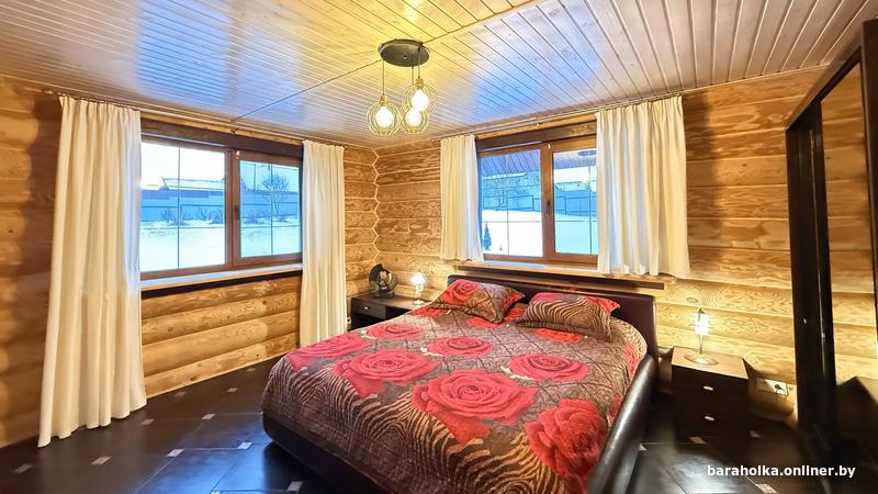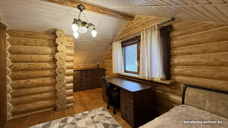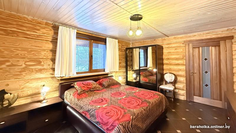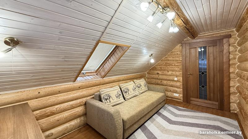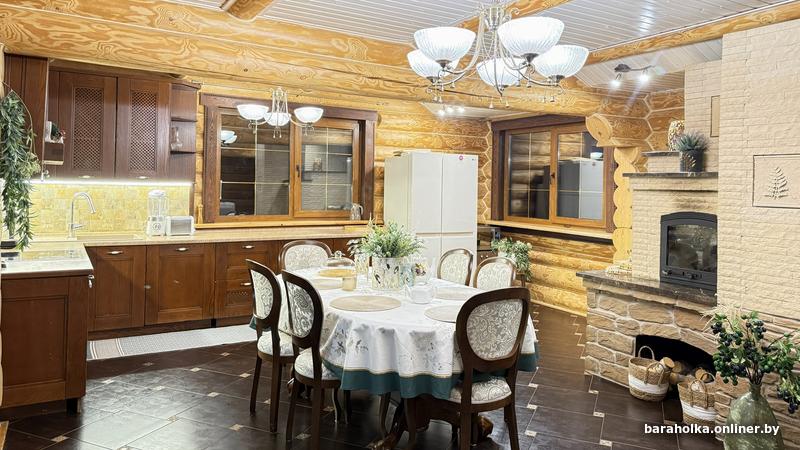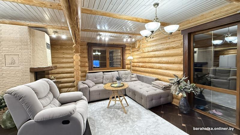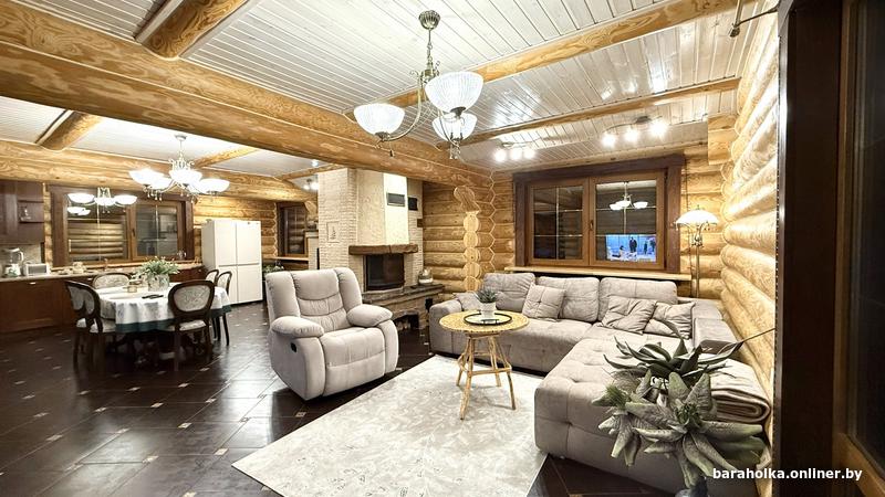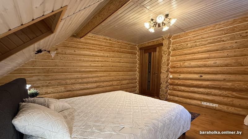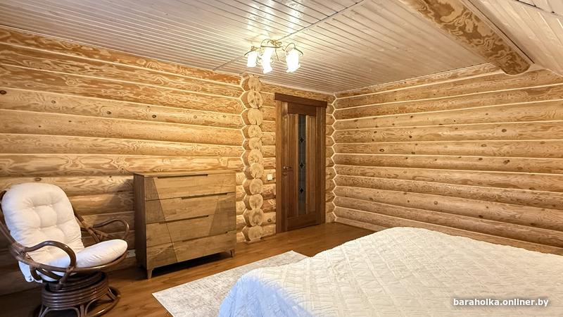 Бревенчатый "живой" сруб с хорошей энергетикой, построенный в стиле ручной рубки (диаметр бревен около 30см). Материал крыши - мягкая черепица. Общая площадь дома составляет 173.6м2. Жилая площадь 84.8м2 состоит из пяти изолированных комнат (большой спальни на первом этаже и четырех спален на втором). Просторная гостиная 45.1м2 с оборудованной кухонной зоной, прекрасной печью с камином и местом для отдыха. В доме есть два санузла, бойлерная, застекленная терраса, балкон с которого открывается прекрасный вид на участок.