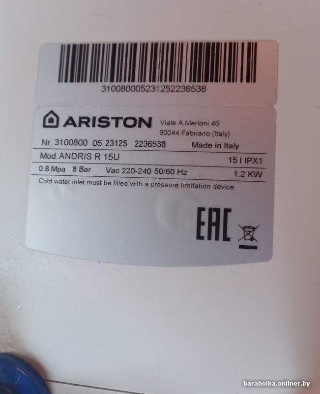 накопительный водонагреватель Ariston Andris R 15U настенный электрический, 15 л, б/у 2 месяца