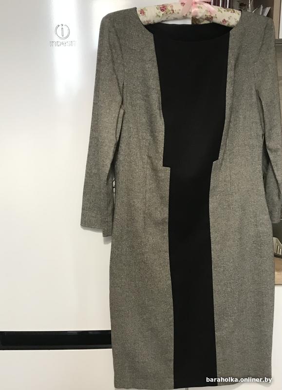 Платье на подкладке р.44-46 Отличного качества ткань и пошив. Вставка спереди стройнит фигуру. Удобная вещь для офиса в холодное время. Состояние нового.