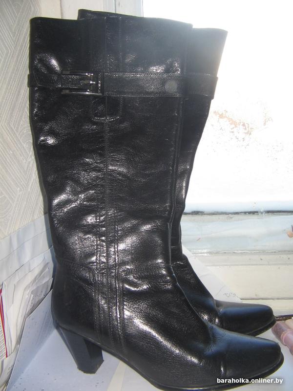 • шикарные кожаные сапоги с блеском. на каблуке р р 38 пару раз б уМинск