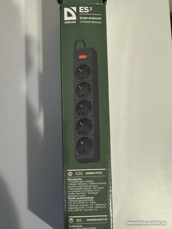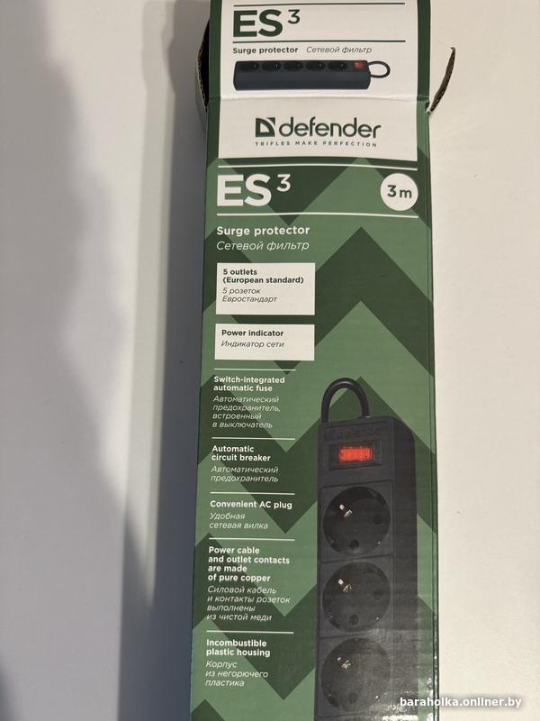 Сетевой фильтр Defender ES 3, новый, 3 м, 5 розеток, 2200 Вт