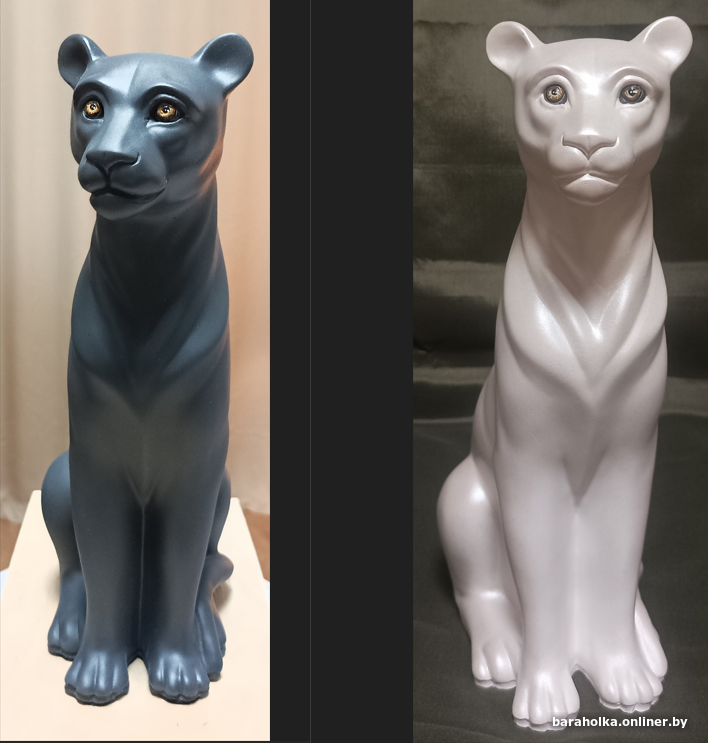Эта большая фигура пантеры, размером 28Х18Х11(см) — гипсовая скульптура ручной работы, изготовлена из высокопрочного гипса "Скульптор". Цвет: графитовый и серебристо-белый перламутровый, что делает её уникальным и аутентичным элементом декора для любого помещения. Благодаря замысловатым деталям и мастерству исполнения, эта статуэтка пантеры станет не только прекрасным дополнением к любой коллекции, но и продуманным и впечатляющим подарком для тех, кто ценит искусство и скульптуру ручной работы. Идеально подходит для любителей животных или коллекционеров скульптурных произведений, эта фигурка передаёт величие и элегантность пантеры в вневременной и художественной форме.