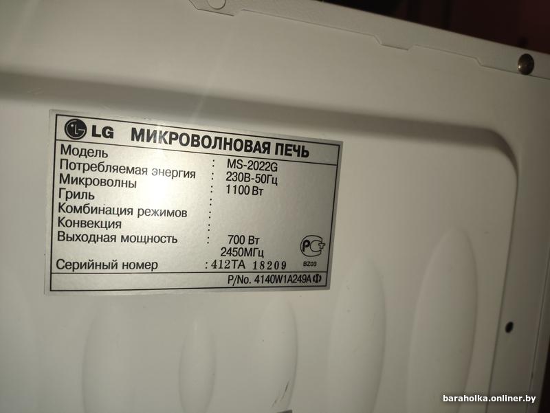 Печь СВЧ LG 20л.700Вт. Отл.Раб. Сост. Проверим.