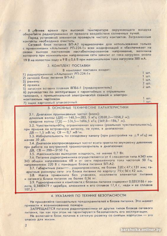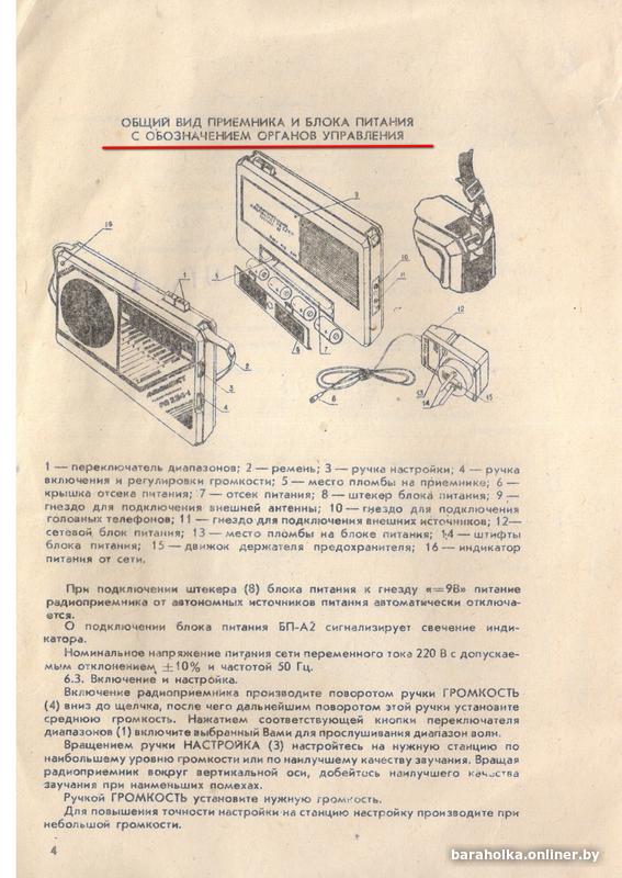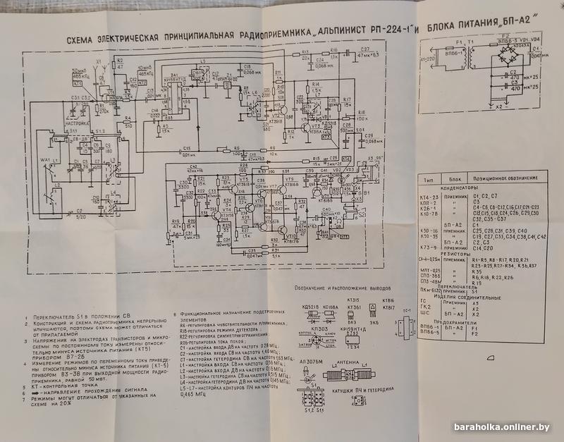 Продаю радиоприёмник "Альпинист РП-224-1". Изготовлен в январе 1993 года. Технические параметры, описание, общий вид с указанием органов управления приведены на фото из "Руководства по эксплуатации". Само "Руководство" + схема электрическая принципиальная + электромонтажный чертеж печатной платы + блок питания прилагаются. Приёмник был в одних руках, поэтому находится в хорошем состоянии.