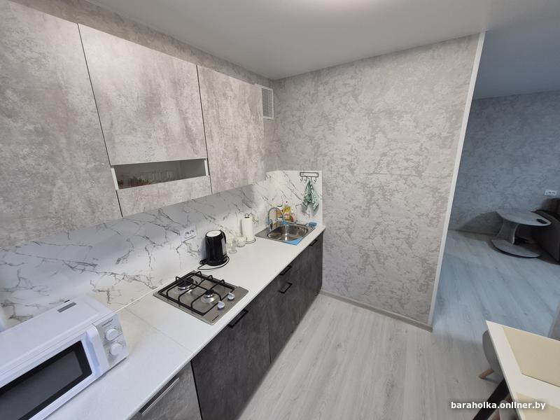 — Современная кухня: варочная панель, СВЧ, холодильник, стиральная машина и всё для приготовления любимых блюд.