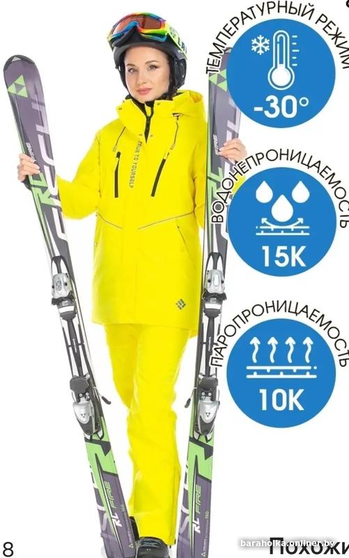 Горнолыжная женская куртка фирмы Forcelab. Размер 52-54. Рост 176-180 см. Производство Китай. Утеплитель Tuinsulate поддерживает температуру от 0 до -30 градусов, плотность синтетического утеплителя 160 г/кв.м., водонепроницаемая мембрана 10К/5К, вид застежки – молния, несъемный без опушки регулируемый капюшон, ветрозащита