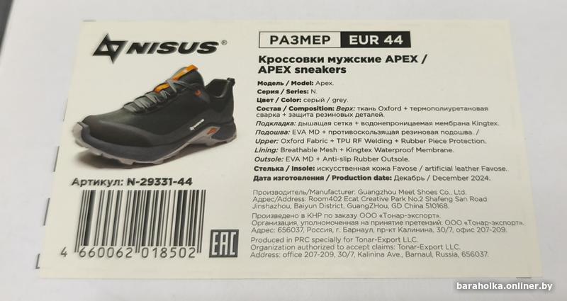 Кроссовки треккинговые Nisus Apex, отличное состояние, размер 44 (длина ступни 28.5 см) (не маломерят), отправка Европочтой. Звонить 8-029-106-14-24