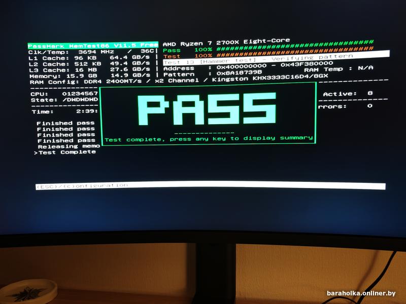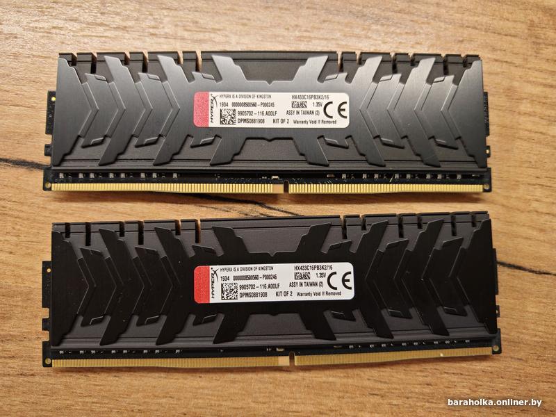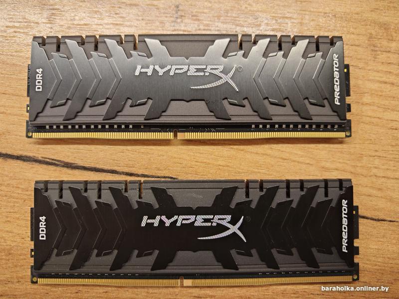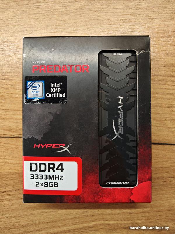 Оперативная память HyperX Predator 2x8GB DDR4, 3333 МГц. Тайминги 16-18-18. Напряжение 1.35 В.