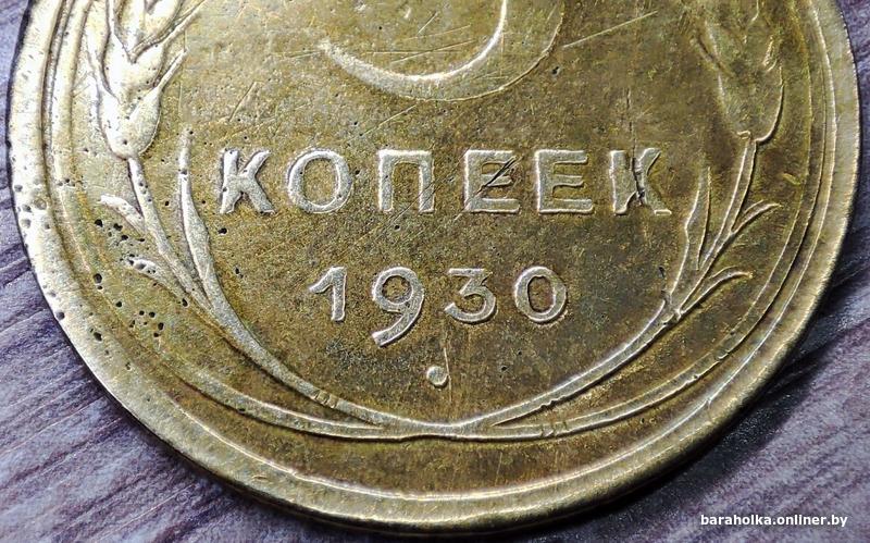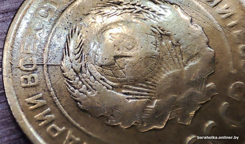 Монета номиналом 5 копеек 1930 СССР в количестве - 1шт (немагнитная). Начинающийся раскол штемпеля аверса
