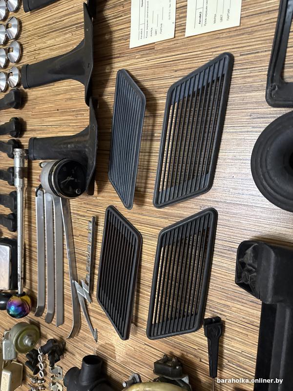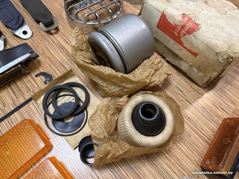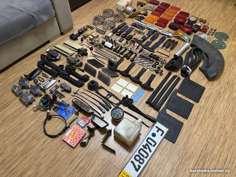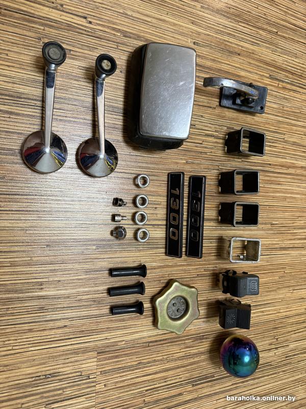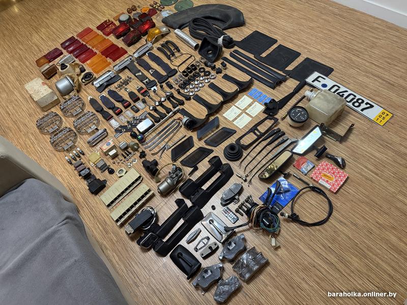 Реле, фильтр, ручки дверей, стеклоподъемники, термостат, крышка масленного фильтра, свечи, салонное зеркало, наружное зеркало, часы АСЖ-1, уплотнитель багажника, бырзговоики, камера колеса, стекла занимают фар, стекла передних фар, противотуманные фары, подсветка заднего бампера, ручка КПП, розочка КПП, солдатики дверей, решетки задних стоек, с-образные стойки, поводки дворников, бачок омывателя, и многое другое.