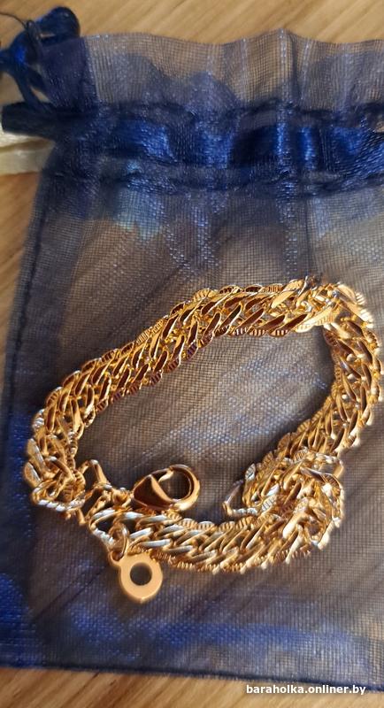 Браслет под золото на руку (бижутерия), новый, длина-16см (в зеленом мешочке), 19-20см (в синем и черном мешочке), ширина-6мм, замок-карабин, изготовлен из медицинского сплава, который не вызывает аллергии и не тускнеет со временем, это роскошный браслет, который неотличим от настоящего золота. Цена за 1шт. Вышлю Белпочтой наложенным или по предоплате.