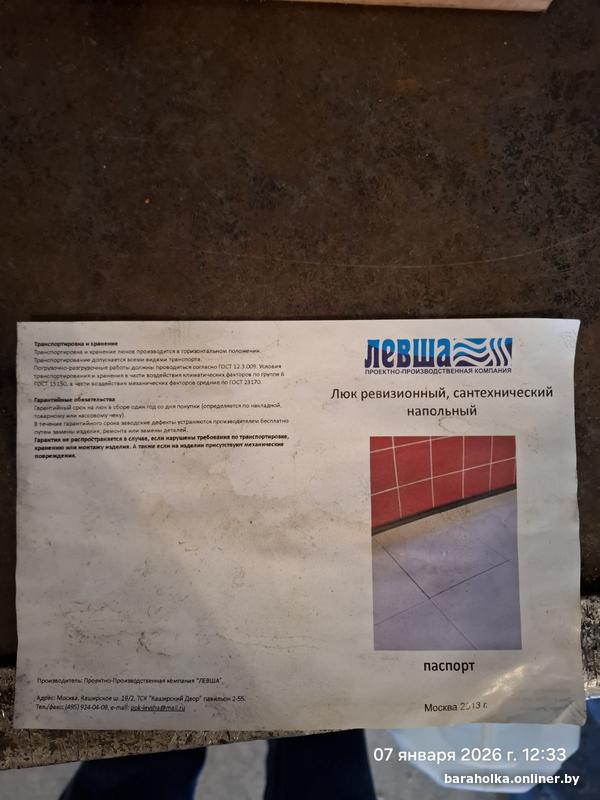Люк ревизионный сантехнический напольный , новый, 600х600.