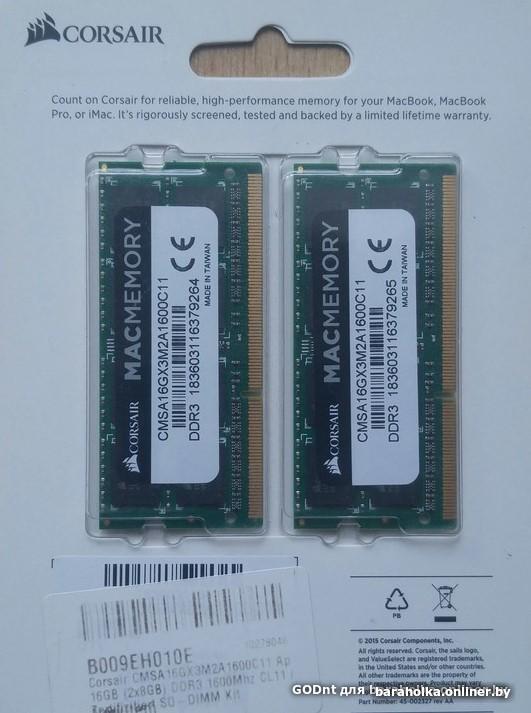 Память новая Corsair DDR3 SO-DIMM, частота 1600 МГц 8+8 GB. для MacBook и Ноутбуков.