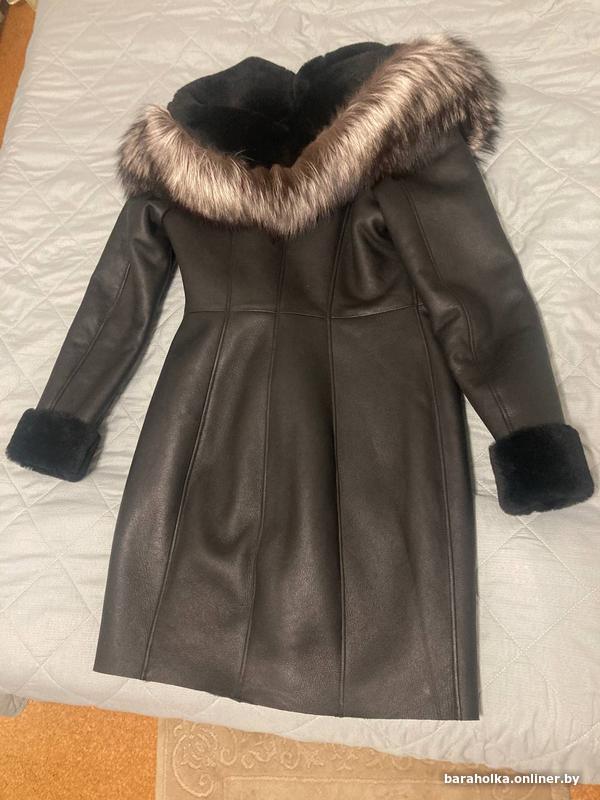 Шикарная дубленка натуральный мех, на капюшоне тоже натуральный мех, привезена из Греции, отличное качество, надевала один раз, Размер 48, но где-то на 46, Длина до колена.