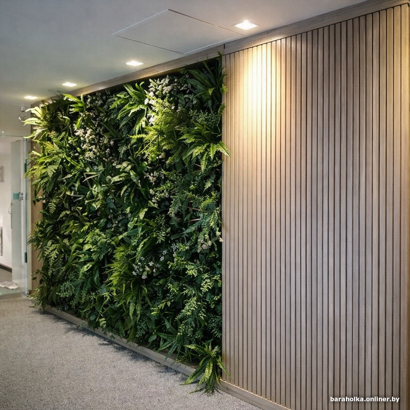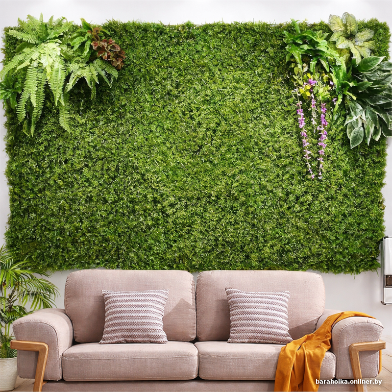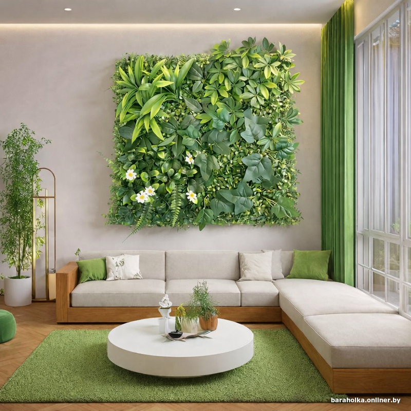 Продаю одну искусственную фитостену для вертикального озеленения интерьера. Не опт, не ИП, не массовая продажа — именно один готовый элемент декора, который можно использовать как самостоятельный акцент в пространстве.