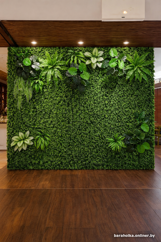 Искусственные растения в фитостене не вызывают аллергии, не притягивают насекомых и не создают проблем с влажностью. Это особенно важно для общественных пространств и жилых помещений, где хочется сохранить чистоту и порядок без постоянного обслуживания. Материалы сохраняют цвет и форму на протяжении долгого времени, а сама конструкция остаётся эстетичной и аккуратной без дополнительного ухода.