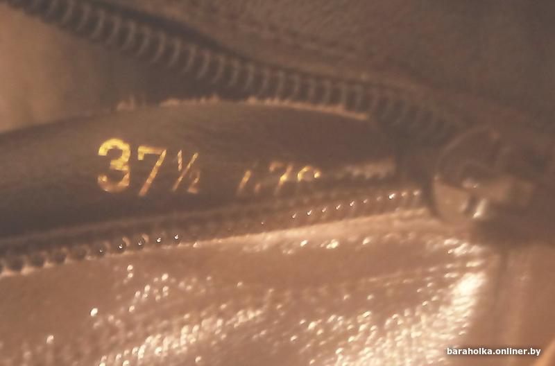 Размер: выгравированный на сапоге 37 1/2; на подошве -- 25 (если учитывать размер стельки, то реальный размер может быть от 37 до 39)