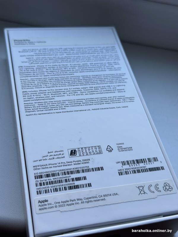 Продаю iPhone 14 Pro фиолетовый с объемом памяти 256 ГБ. Хорошее состояние.