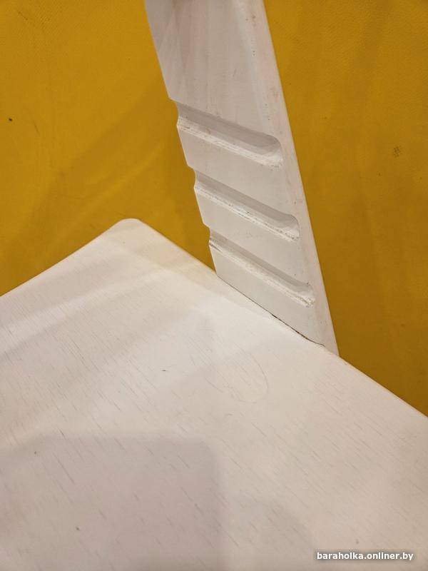 деревянный стул с возможностью регулировки высоты сидения и подставки для ножек. На боковых опорах стула сделано по 13 пазов, что позволяет подобрать подходящий вариант для ребенка от 2х до 12 лет. Стул изготовлен из плотной древесины, он довольно тяжелый и очень устойчивый. На этом стульчике ребенок будет чувствовать себя комфортно за общим столом в кругу семьи. Стул можно использовать и для занятий ребенка за письменным столом. Вещь в отличном состоянии